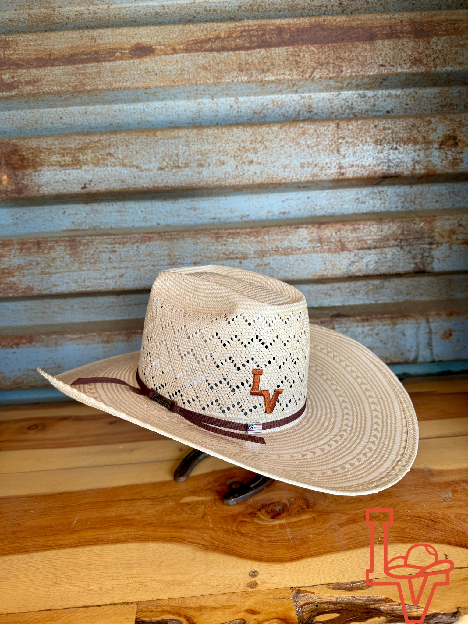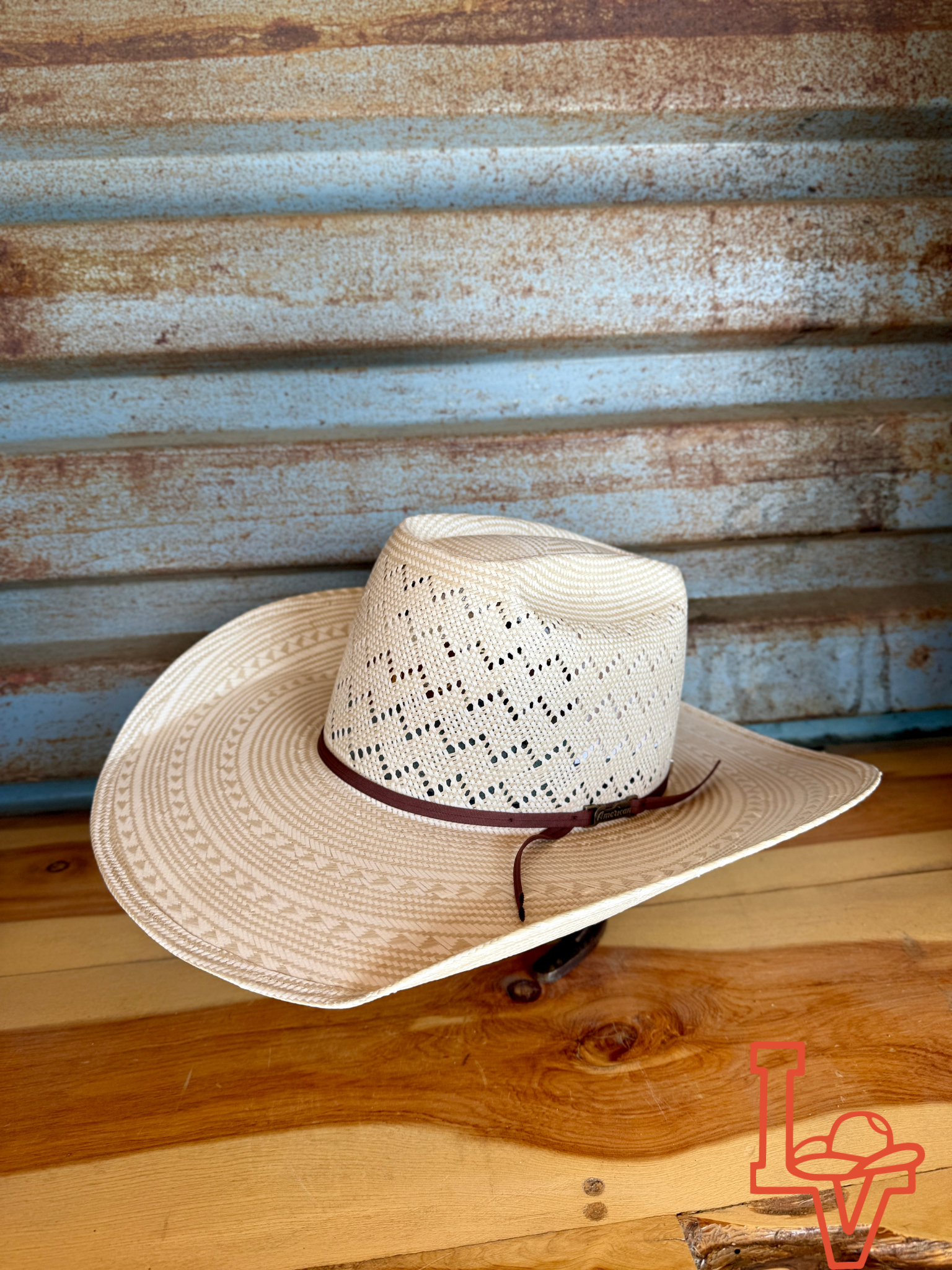 American Hat Company Straw Hat Regular Crown Waves Tan White