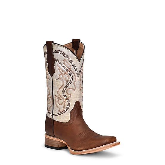 Circle G Kid's Toddler J7100 Brown Aqua Embroidery Square Toe Western Boots