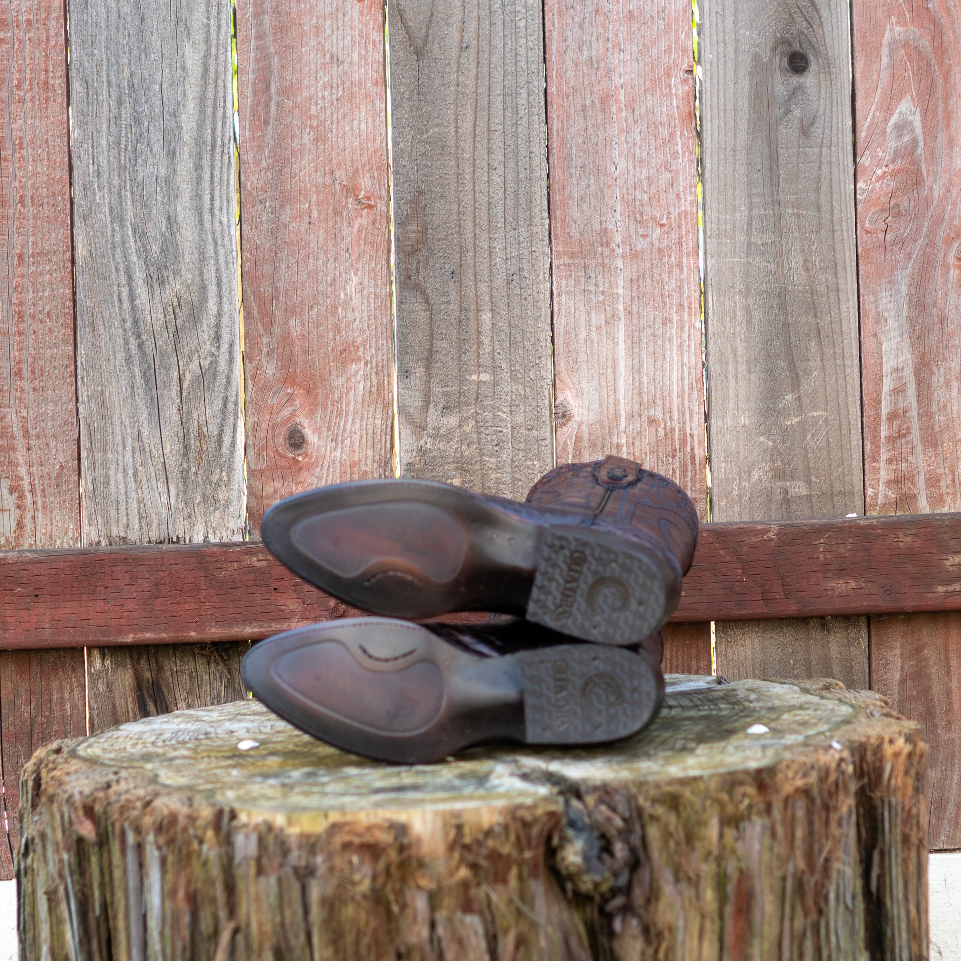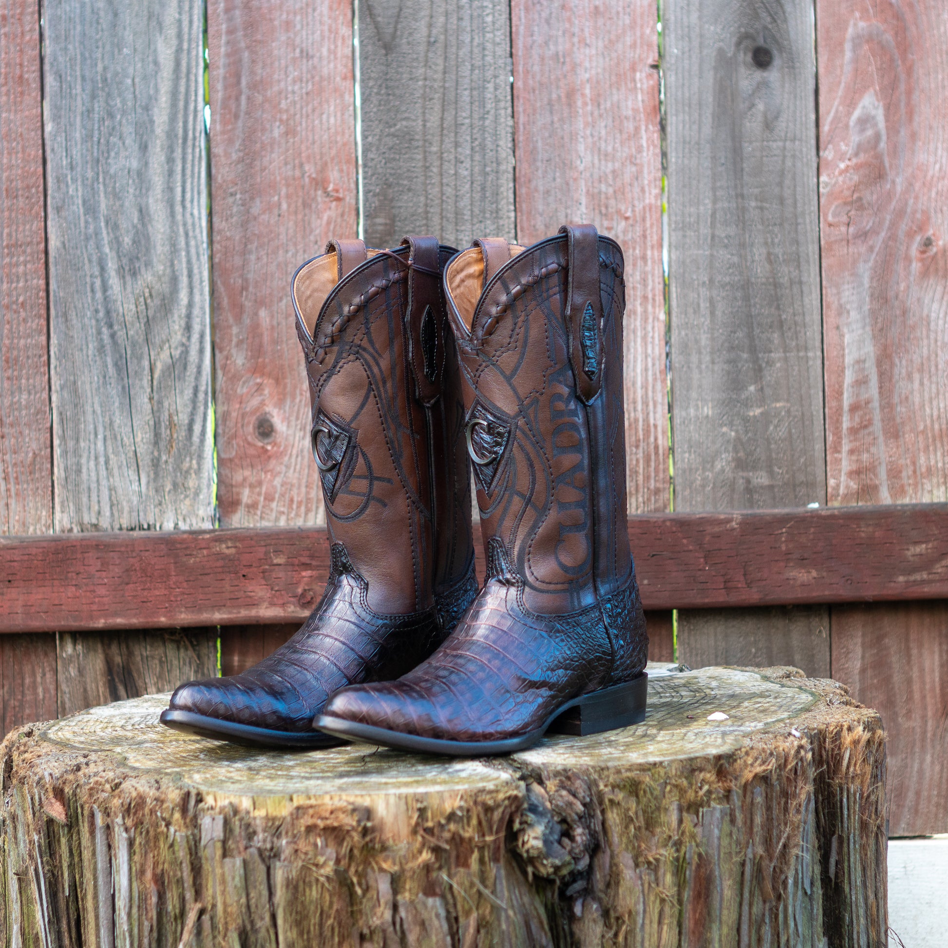 Cuadra Men's Brown Caiman Laser Embroidery Round Toe Cowboy Boots