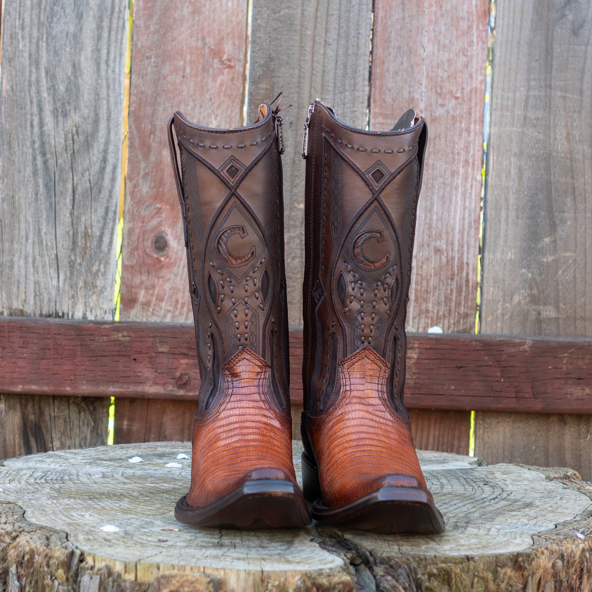 Elevate your style with these exceptional Western engraved brown leather boot for men, meticulously handcrafted from genuine Lizard Teju and bovine leather.