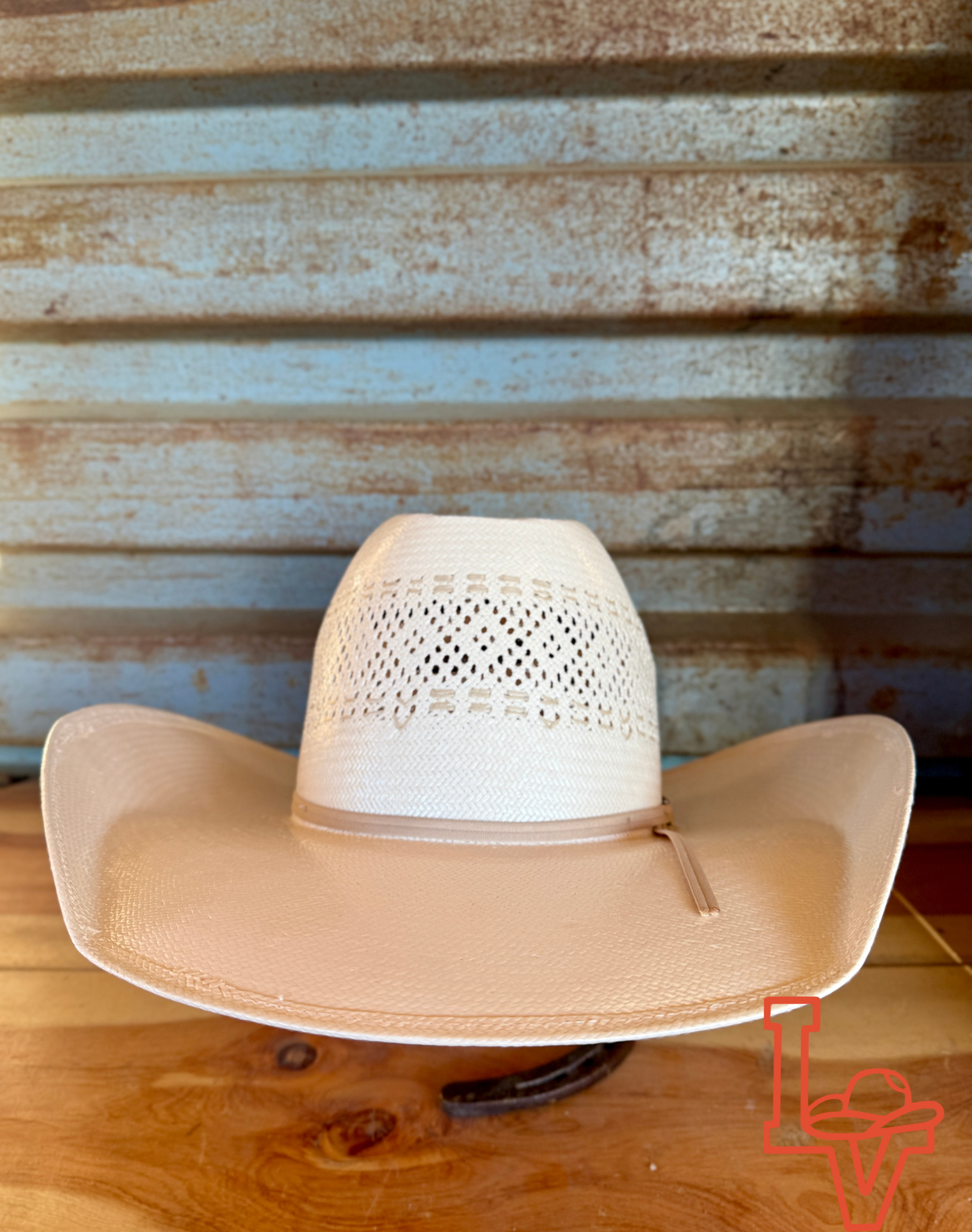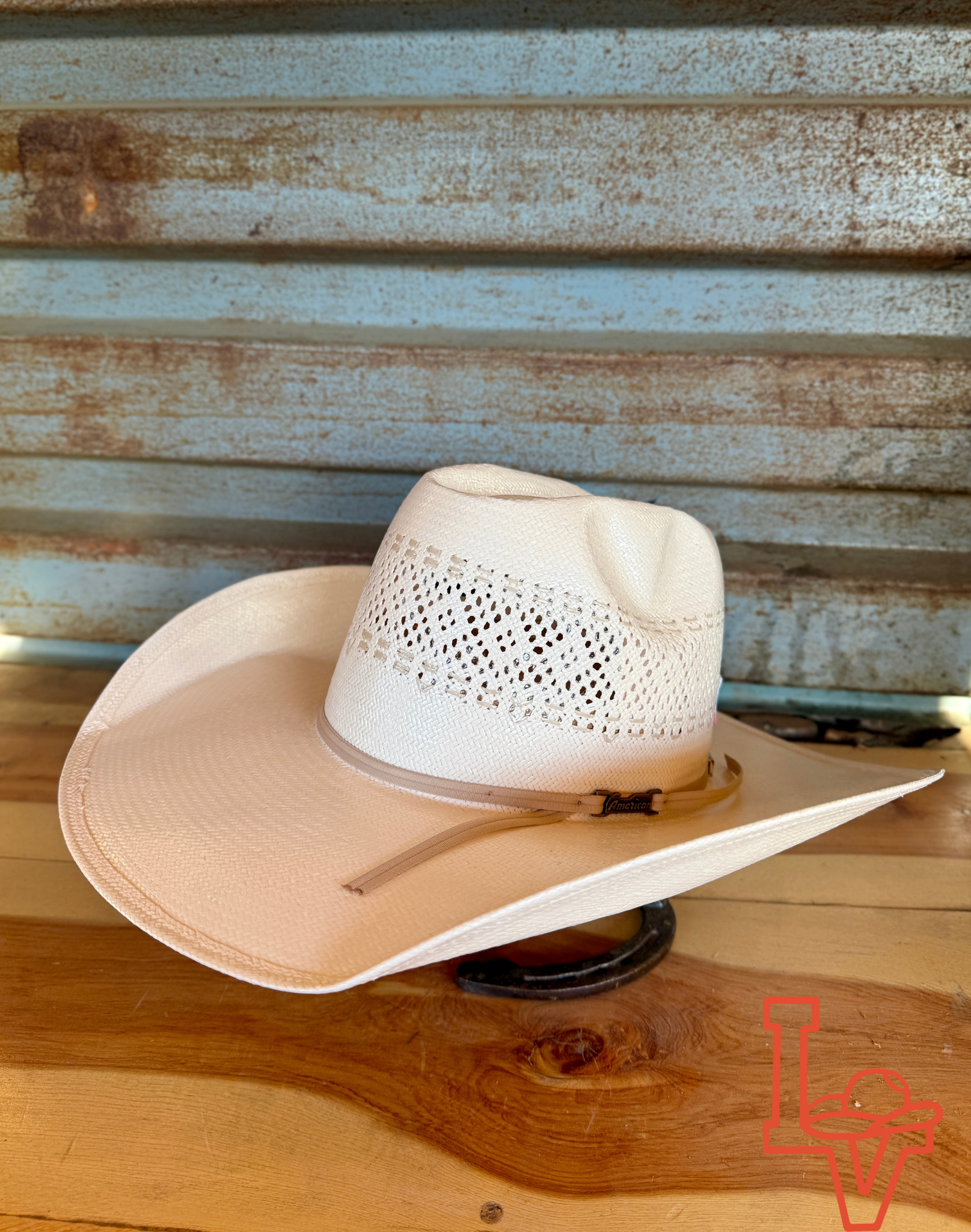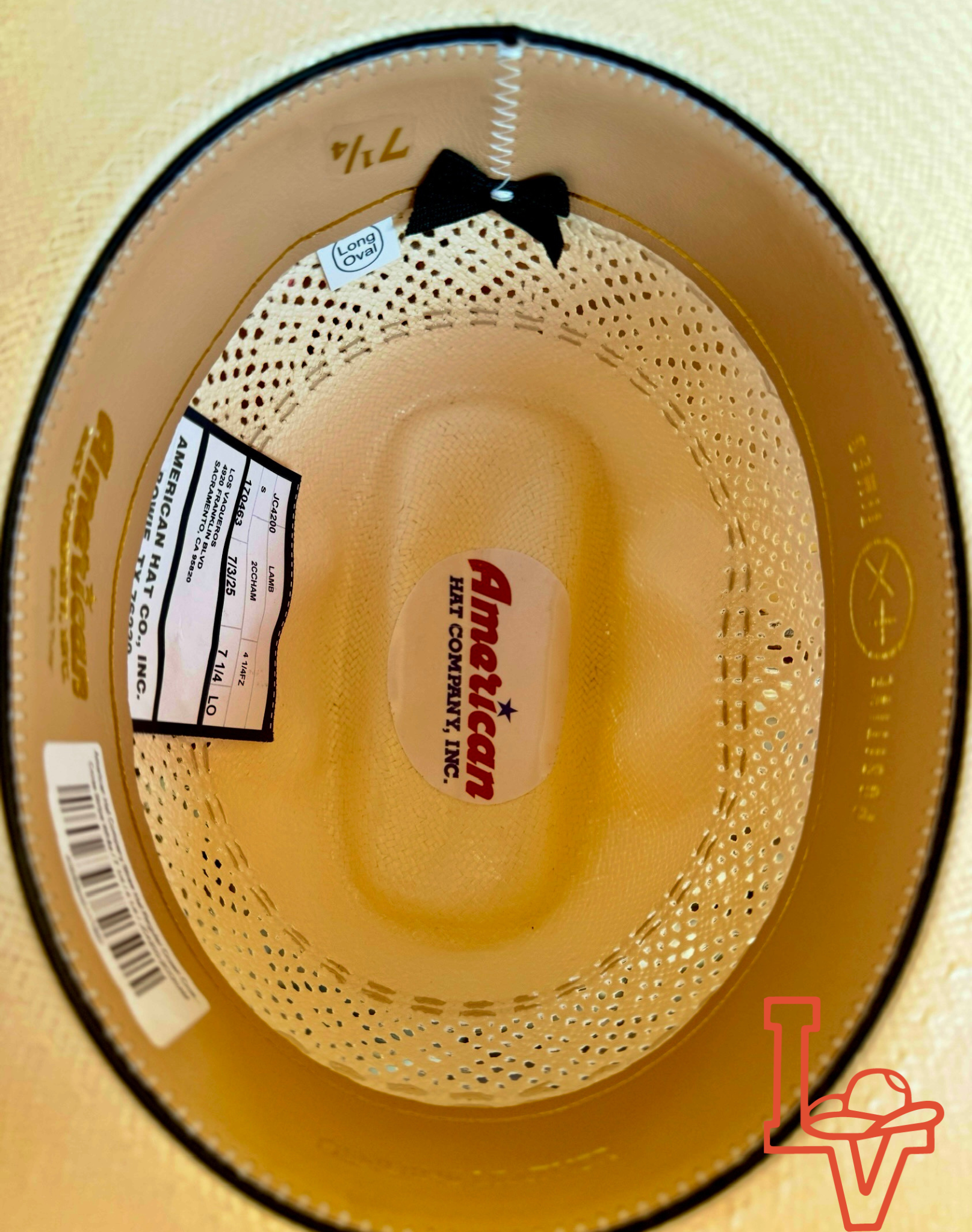 American Hat Company Straw Hat Regular Crown Cross Stripe White