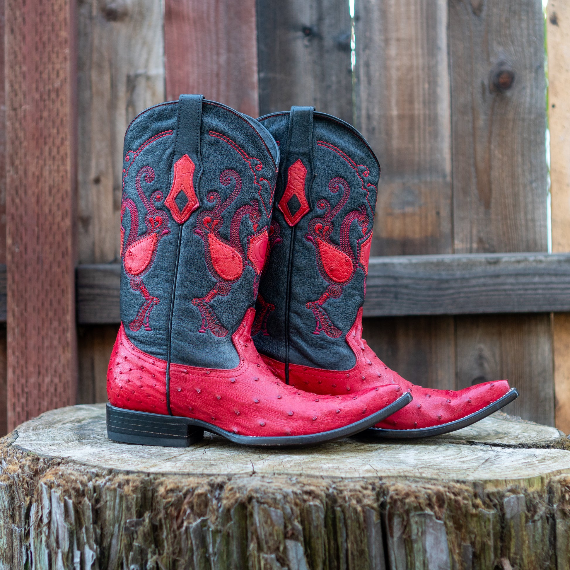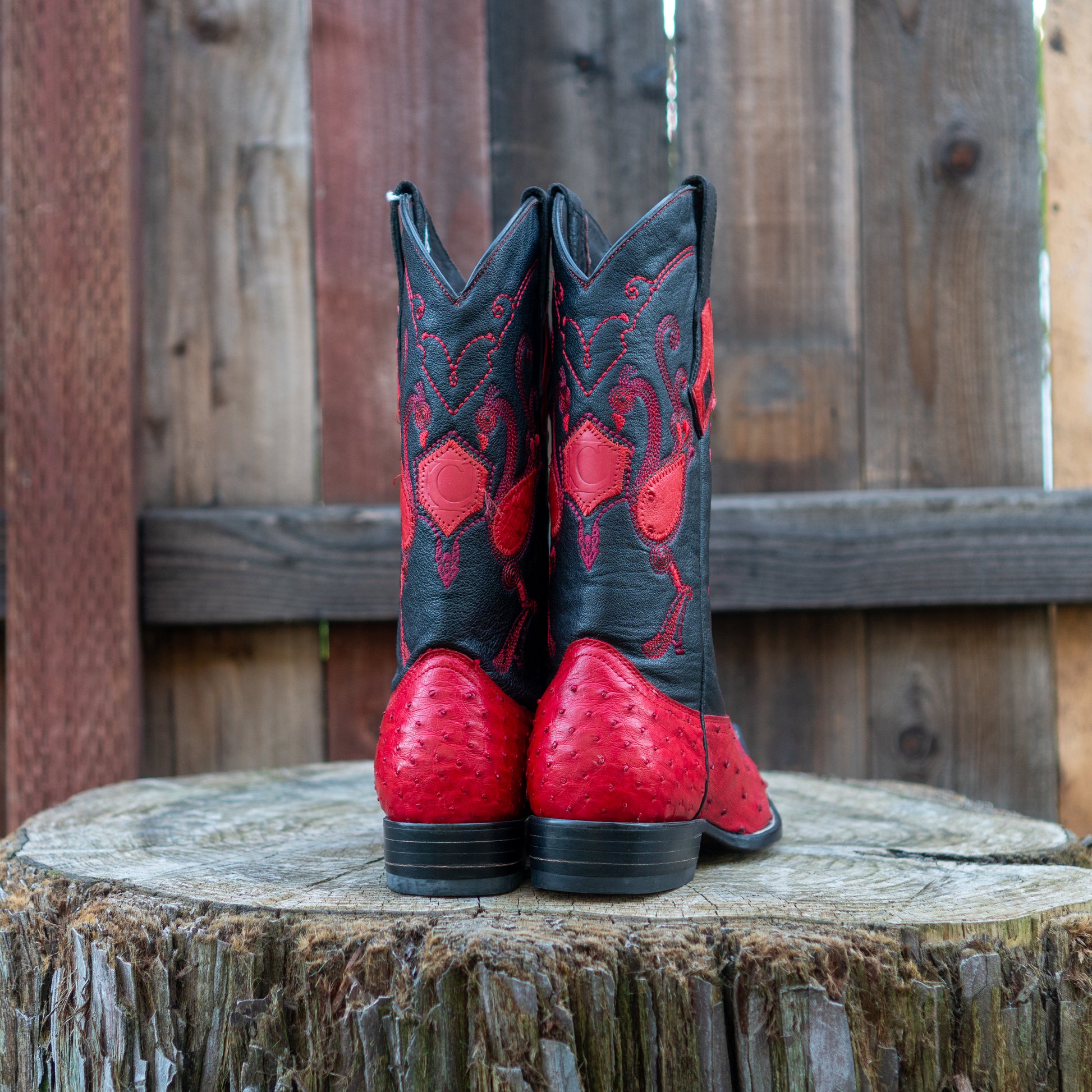 Cuadra Men's Ostrich Cowboy Boots in Red