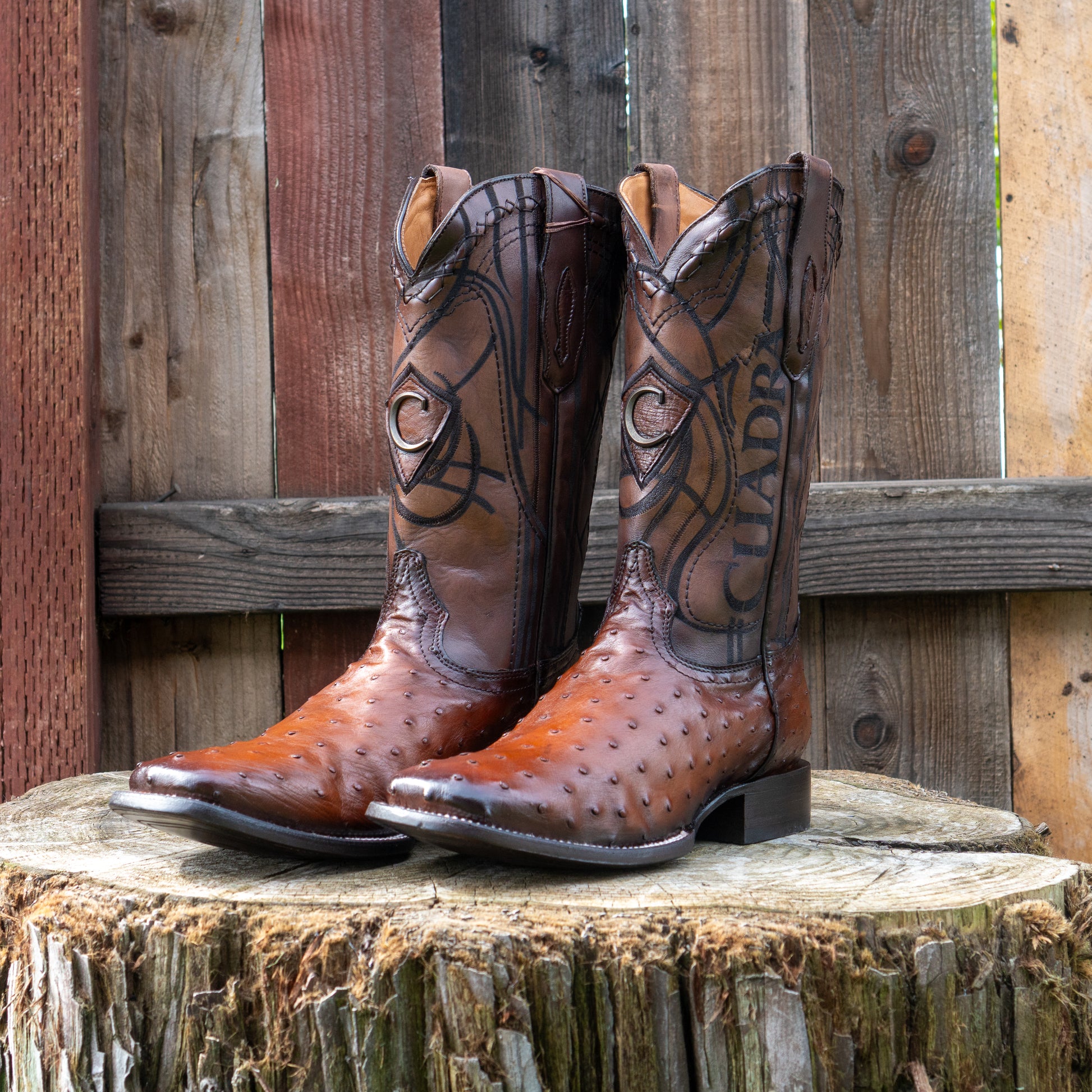 Cuadra Men's Ostrich Laser And Embroidery Square Toe Cowboy Boots in Brown