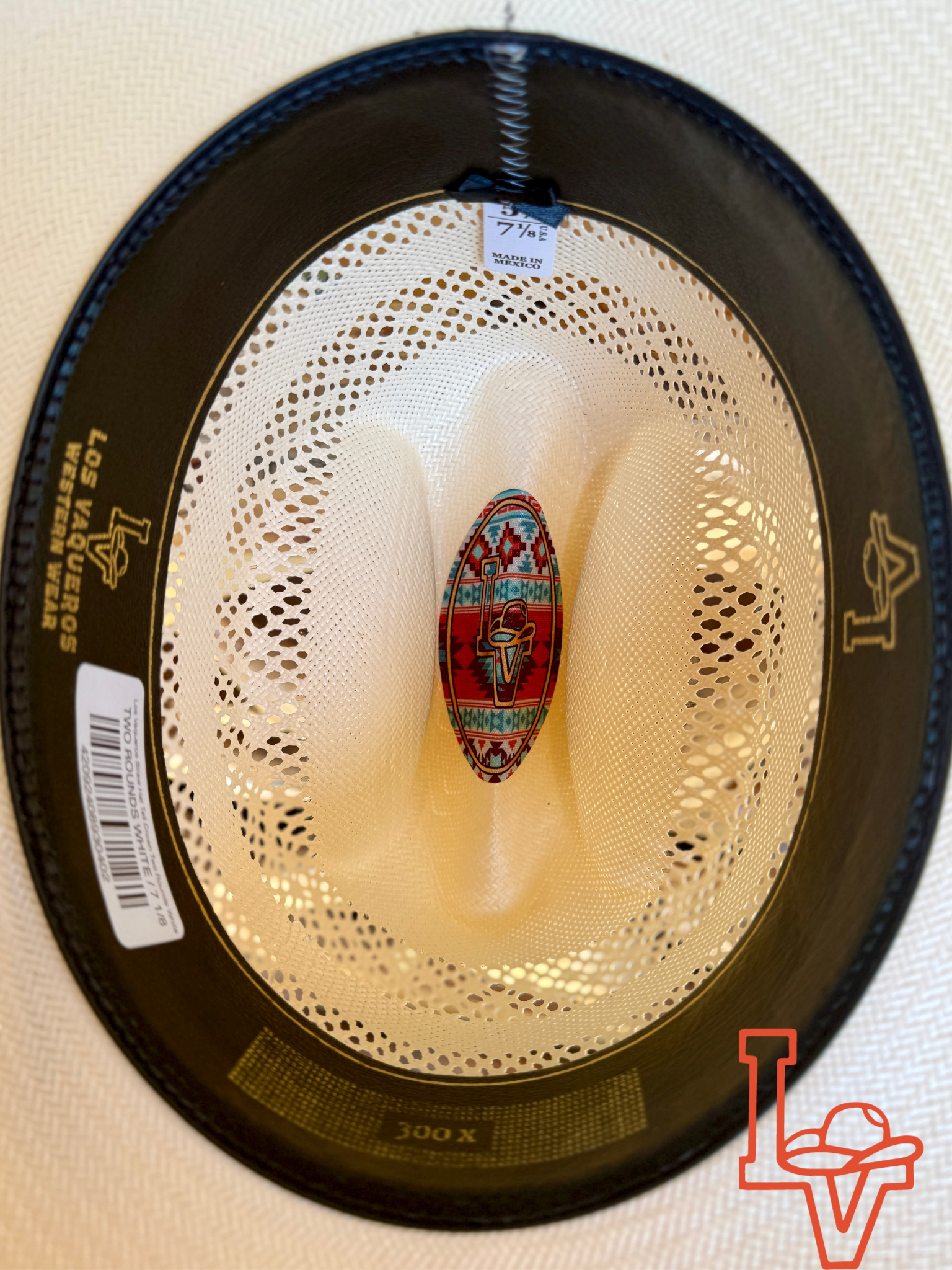 Los Vaqueros Straw Hat Tall Crown Two Rounds White