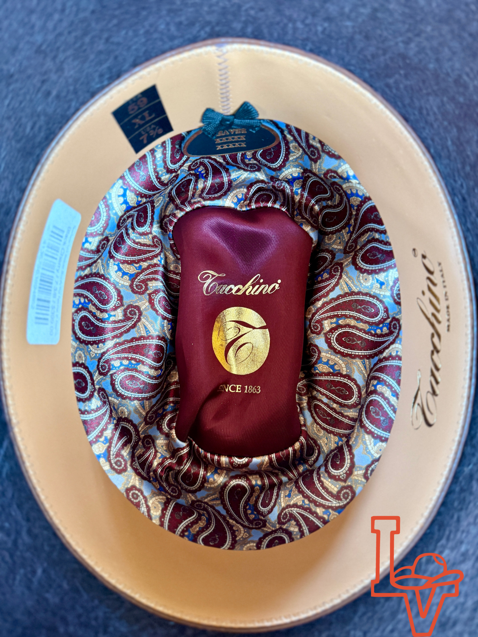 Italian Silk Interior and Calf Skin Hat Band: Indulge in the finer details that matter. The interior of Tacchino hats are optimized with the luxurious touch of Italian silk, and accentuated with an interior hat band crafted from the finest Italian calf or deer skin.