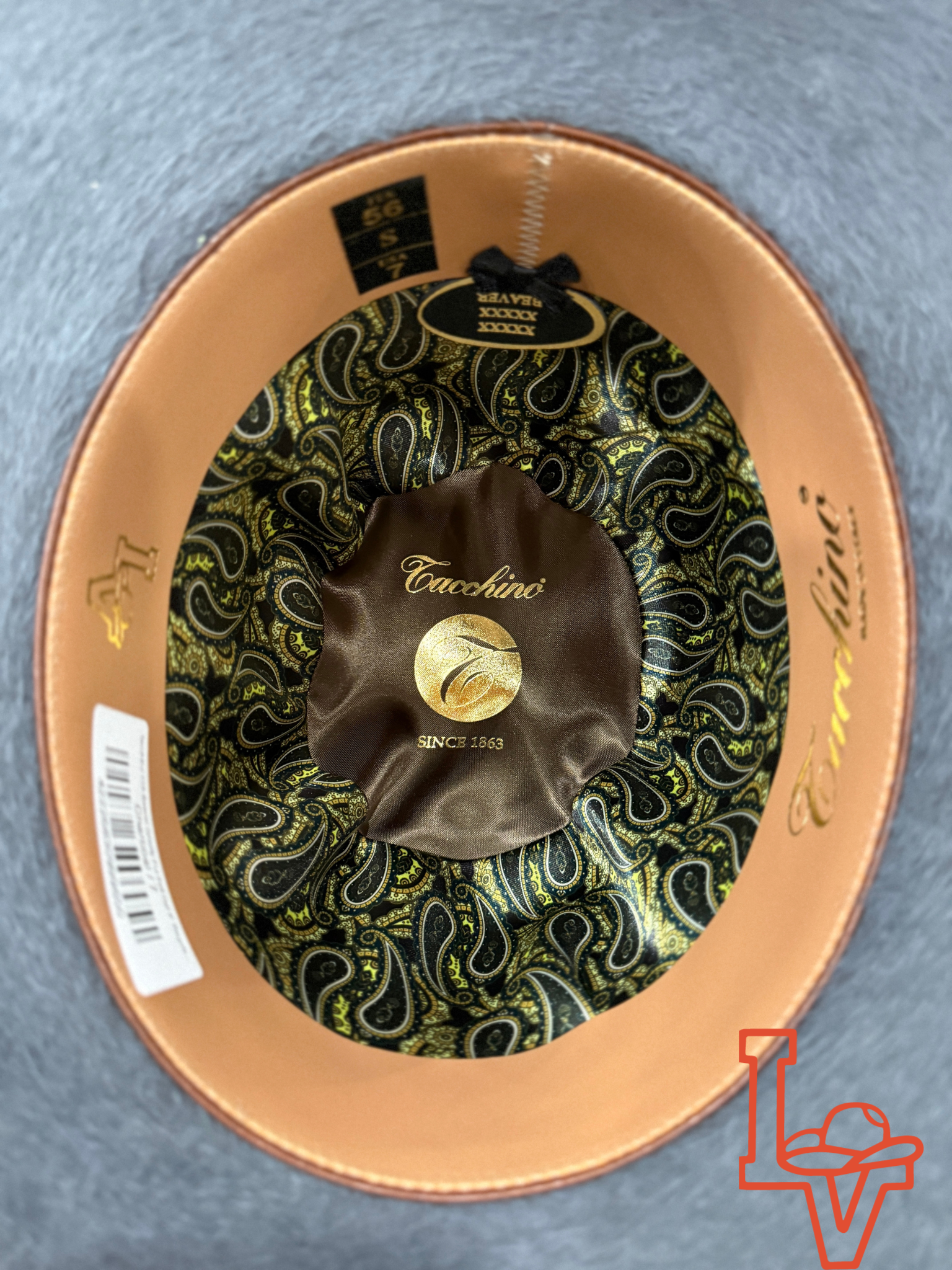 Italian Silk Interior and Calf Skin Hat Band: Indulge in the finer details that matter. The interior of Tacchino hats are optimized with the luxurious touch of Italian silk, and accentuated with an interior hat band crafted from the finest Italian calf or deer skin.